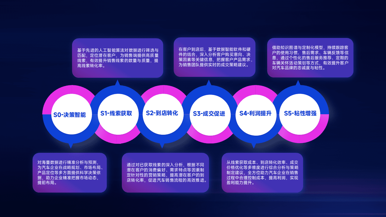 通过拓宽潜在客户来源、、、、优化线索分配并提高到店转化率,,,以增强销售效率。。。同时,,,利用线索数据不断优化分析模型,,有效提升转化率,,扩大营销影响力。。